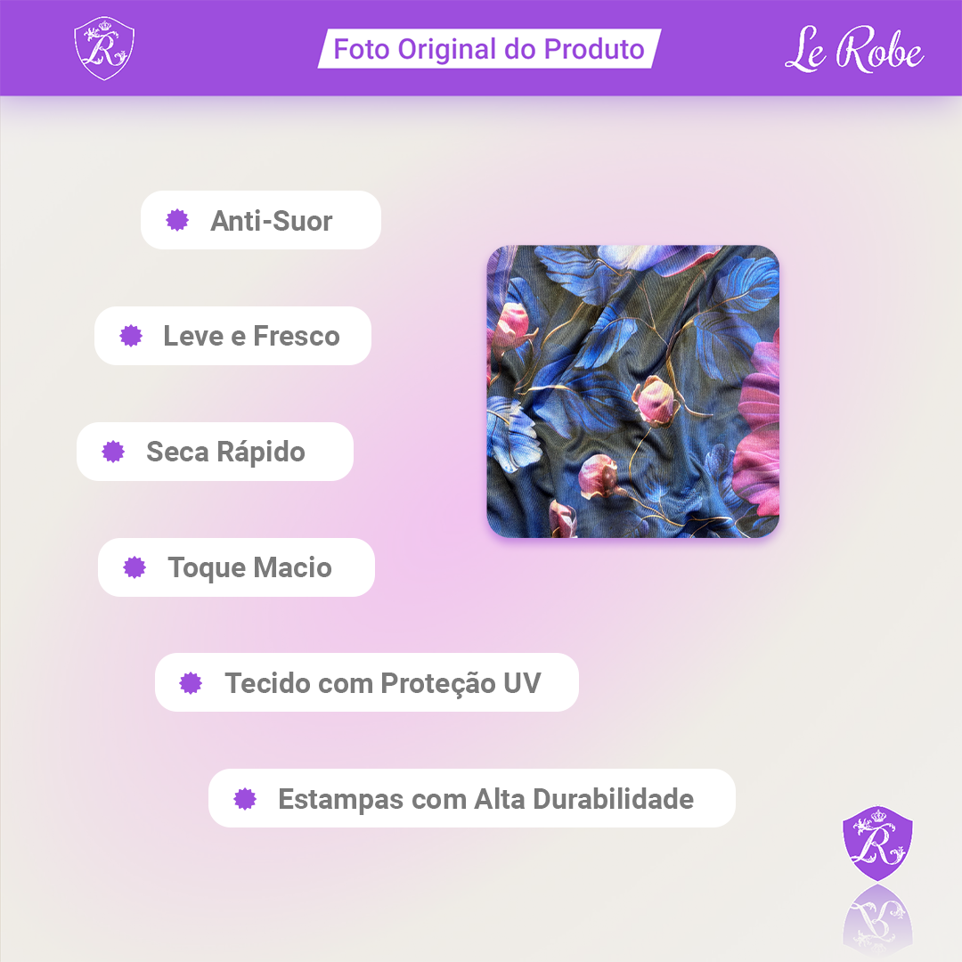 Com estampa floral elegante e traços suaves, essa peça une o romantismo maduro ao estilo moderno, perfeita para mulheres que valorizam o equilíbrio entre beleza natural e presença marcante.