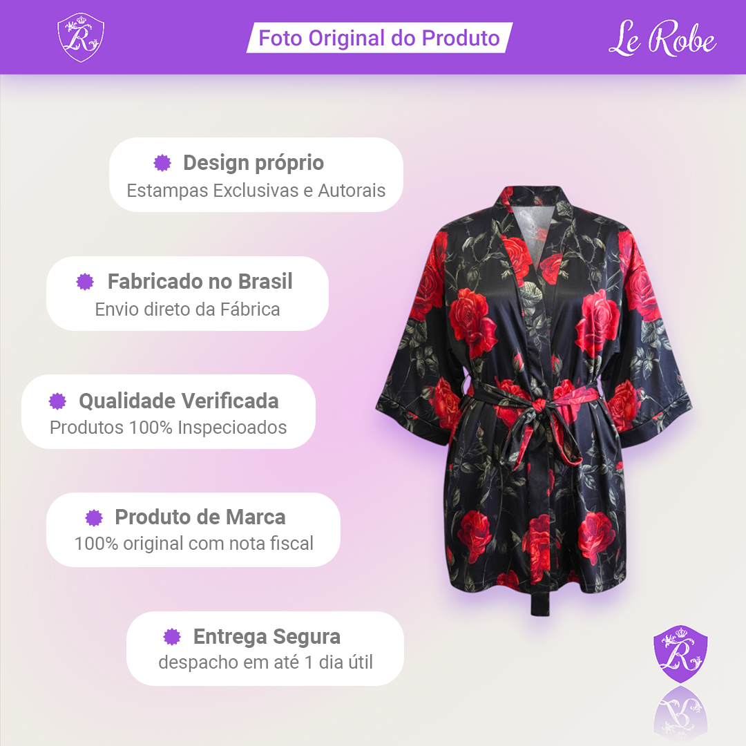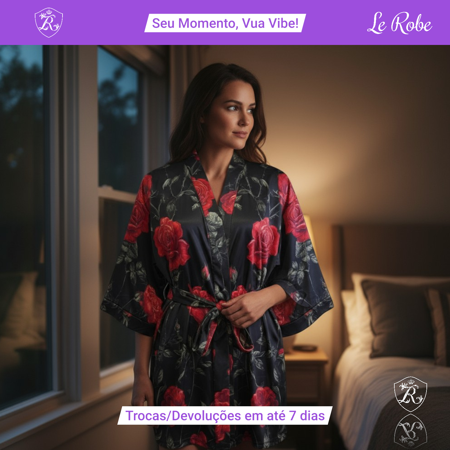 Perfeito para mulheres que vivem amores intensos e querem expressar sua sensualidade com elegância, esse robe une o vermelho carnal ao preto absoluto, criando uma peça que desperta o instinto e a confiança em cada momento especial.