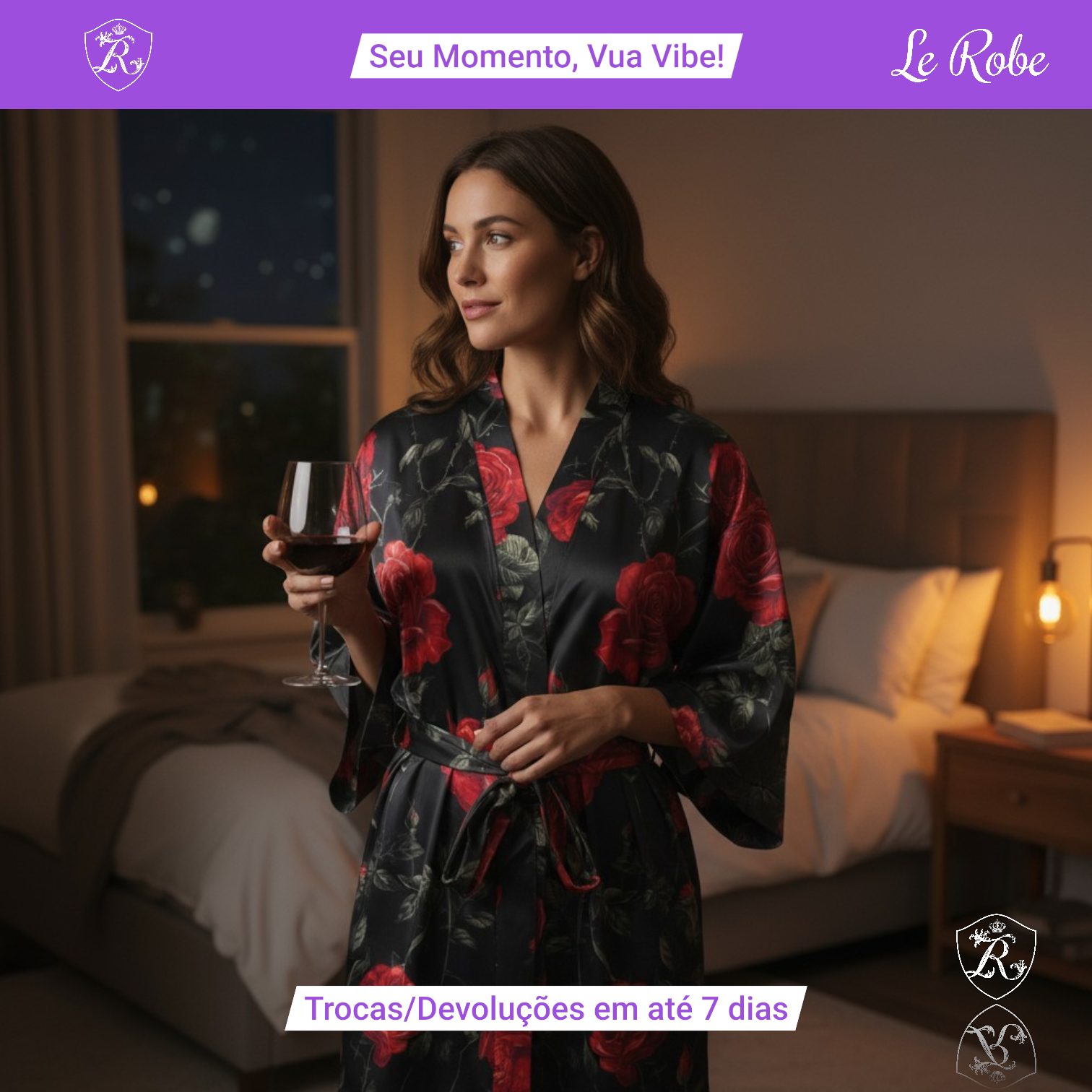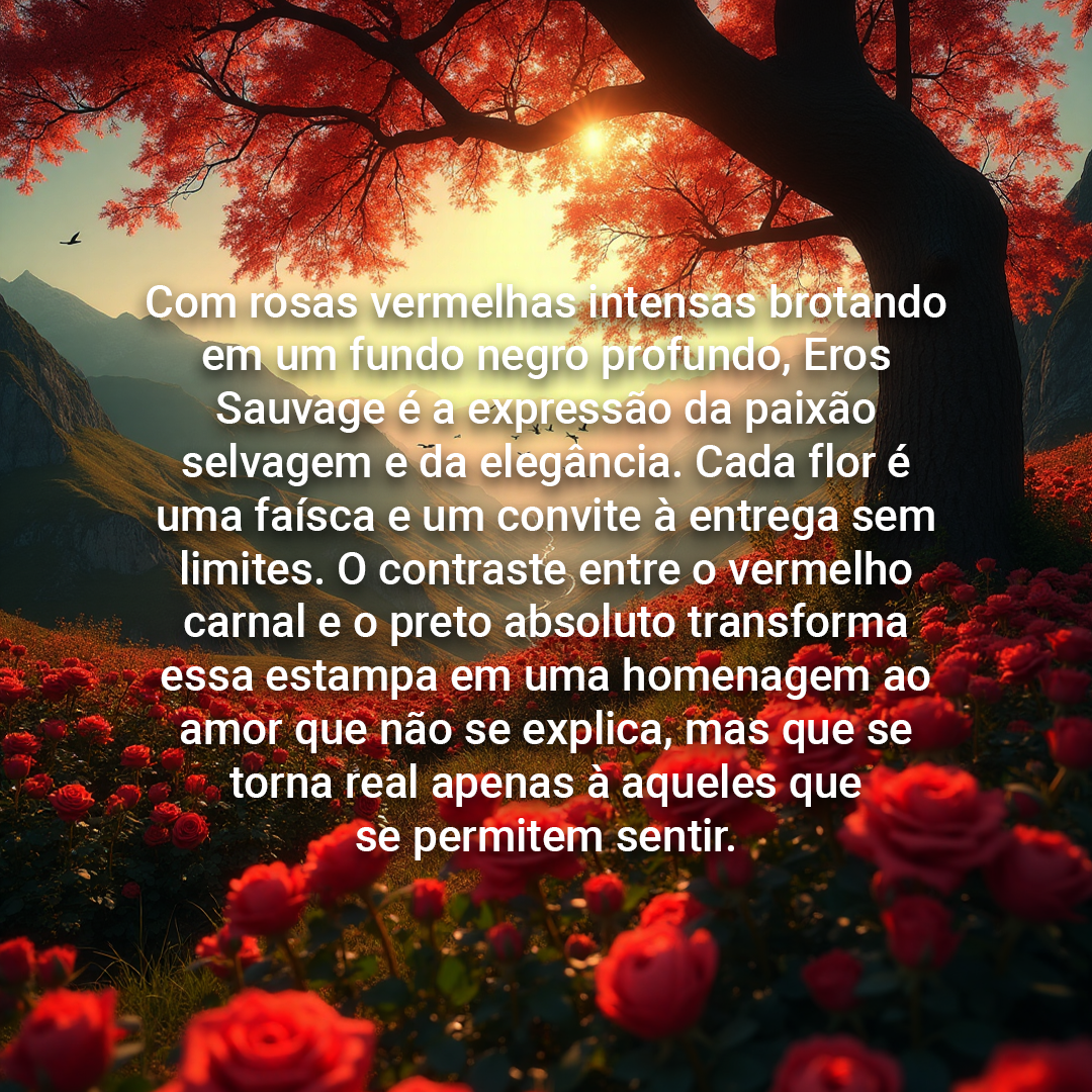 Eros Sauvage é o robe que personifica o desejo indomável e a paixão em estado puro. Com rosas vermelhas intensas sobre um fundo preto profundo, essa estampa elegante e selvagem celebra a força do amor verdadeiro e do erotismo refinado.